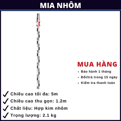 Mia Nhôm LAISAI là thước đo chuyên dụng trong trắc địa và xây dựng, được làm từ hợp kim nhôm bền nhẹ, chống cong vênh và dễ dàng mang theo. Sản phẩm giúp đo chiều cao, khoảng cách và đánh dấu vị trí nhanh chóng, chính xác, phù hợp với kỹ sư, công nhân xây dựng, nhân viên trắc địa hoặc những ai cần công cụ đo đạc tiện lợi, hiệu quả trên công trường. Với thương hiệu LAISAI, mia nhôm đảm bảo độ chính xác cao, bền bỉ và mang đến trải nghiệm sử dụng an toàn, đáng tin cậy.