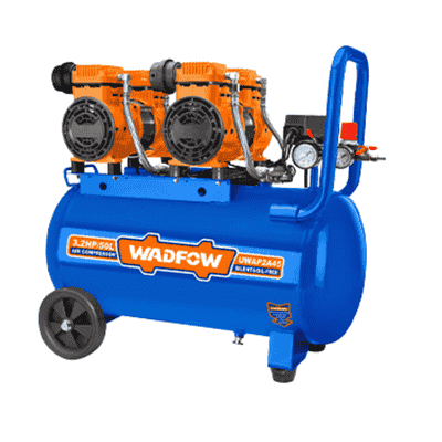 MÁY NÉN KHÍ (KHÔNG DẦU) 2400W-50L WADFOW WAP2A45 Thông tin sản phẩm: Thương hiệu: Wadfow Xuất xứ: Trung Quốc Model: WAP1A25 Công suất đầu vào: 2 × 1200 W (3.2 HP) Bình chứa: 50 L (13.2 Gal) Hệ thống không dầu: Độ ồn 75 dB Động cơ: Động cơ dây nhôm Tốc độ không tải: 2850 rpm Áp suất hoạt động: Tối đa 8 bar